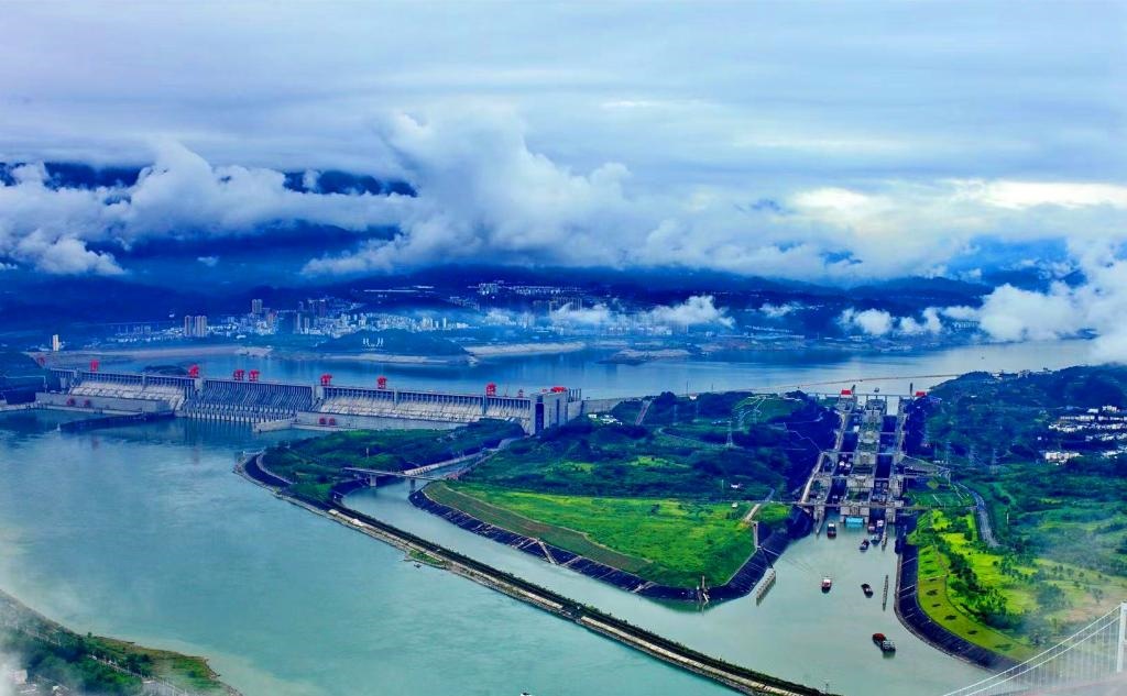 三峽水利樞紐工程全景鳥瞰(左邊為三峽大壩,右邊為船閘)。三峽集團流域管理中心供圖