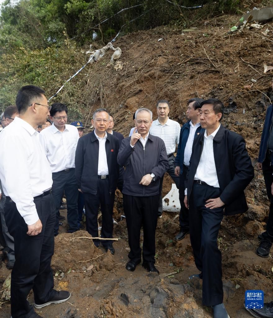 受黨中央、國務院委派,中共中央政治局委員、國務院副總理劉鶴和國務委員王勇率有關部門負責同志3月22日凌晨抵達廣西梧州,指導“3·21”東航MU5735航空器飛行事故現(xiàn)場救援、善后處置及事故原因調(diào)查工作。22日上午,劉鶴、王勇來到事故現(xiàn)場,實地查看環(huán)境條件,仔細了解救援工作進展,并看望慰問搜救人員。新華社記者