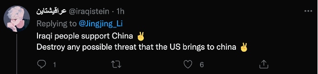 伊拉克網(wǎng)友@iraqistein:“伊拉克人民支持中國(guó),粉碎一切美國(guó)可能給中國(guó)帶來(lái)的威脅吧?!?/p>