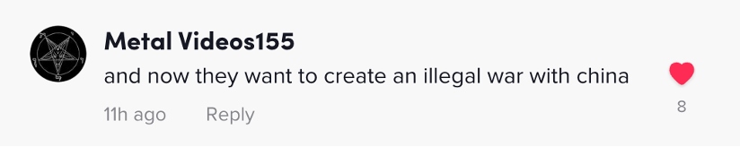 網(wǎng)友Metal Videos155:“不僅如此,現(xiàn)在美國(guó)還想要發(fā)動(dòng)一場(chǎng)非法的對(duì)華戰(zhàn)爭(zhēng)。”