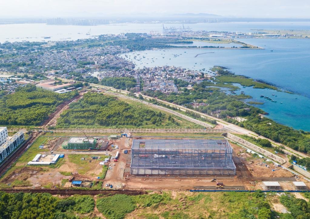 圖為10月2日在海南洋浦經(jīng)濟開發(fā)區(qū)拍攝的建設(shè)中的申能電氣風(fēng)電新能源裝備產(chǎn)業(yè)項目(無人機照片)。新華社記者蒲曉旭攝