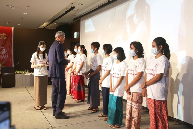 中國(guó)銀行獎(jiǎng)助學(xué)金項(xiàng)目由中國(guó)銀行出資,中國(guó)鄉(xiāng)村發(fā)展基金會(huì)執(zhí)行。中國(guó)駐緬大使陳海、緬甸央行行長(zhǎng)丹丹瑞等出席儀式,中銀香港副總裁陳文、中國(guó)鄉(xiāng)村發(fā)展基金會(huì)秘書(shū)長(zhǎng)陳紅濤等線上參會(huì)。