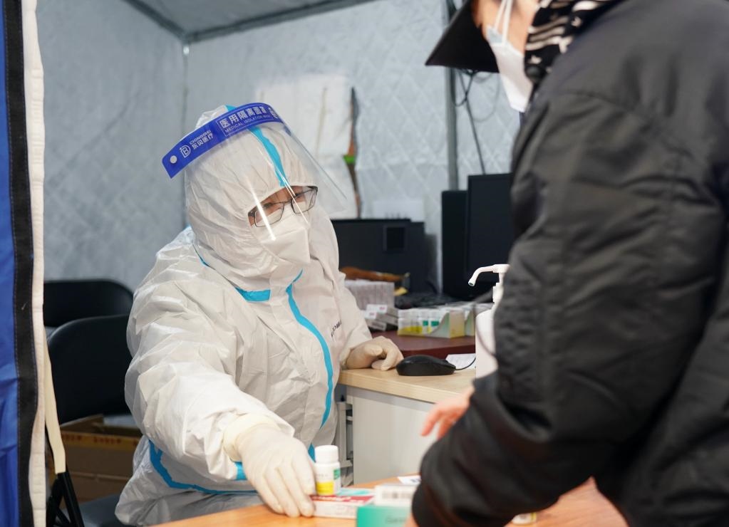 近日,為方便發(fā)熱患者就醫(yī),保障群眾就醫(yī)需求,北京市部分醫(yī)院在體育館里開(kāi)設(shè)簡(jiǎn)易發(fā)熱門(mén)診,為市民提供診療、開(kāi)藥等服務(wù)。新華社記者 張晨霖 攝