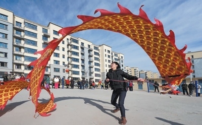 村民在易地搬遷的馬蘭新村廣場(chǎng)上開展文體活動(dòng)。