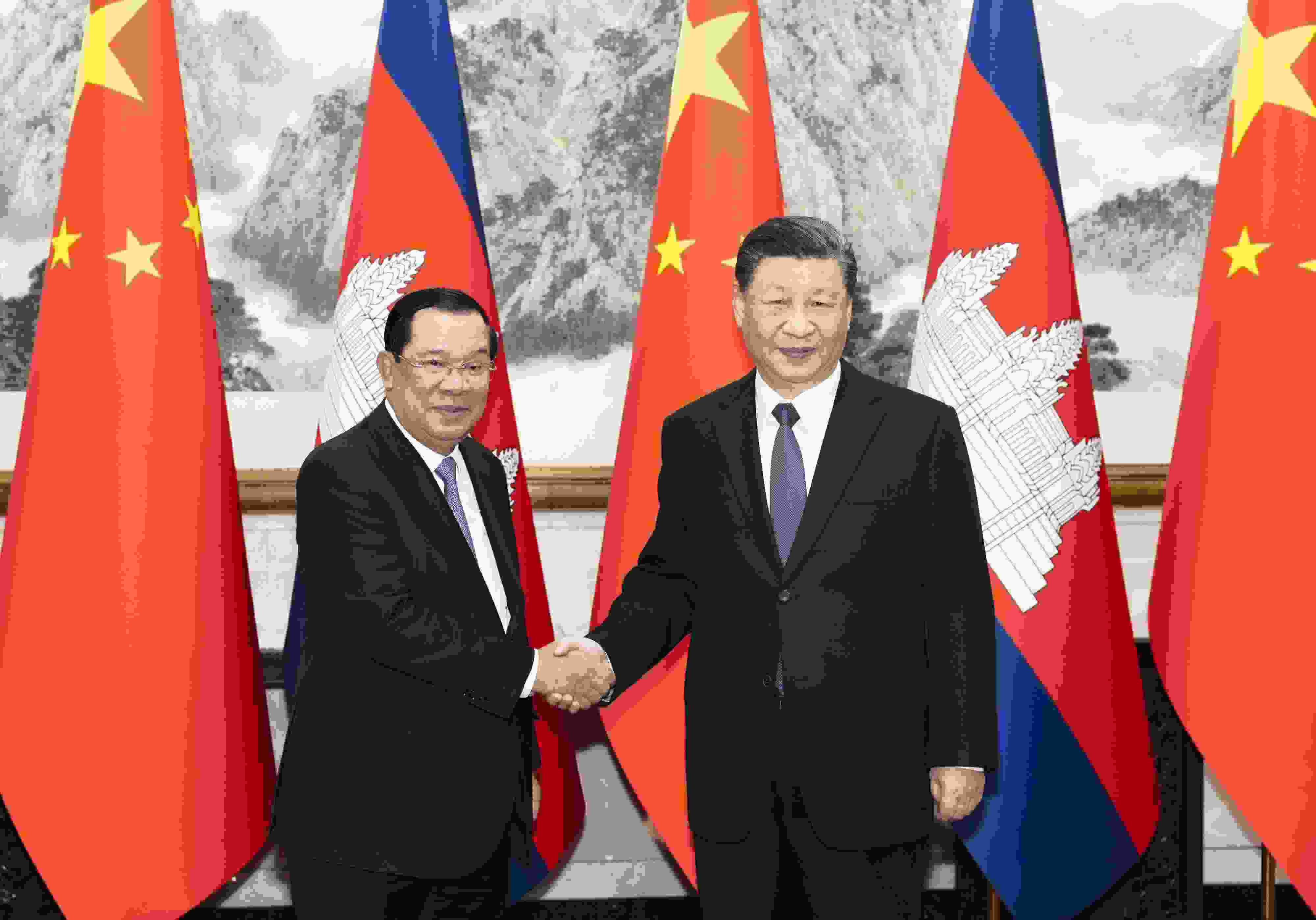 △ 2023年2月10日,習(xí)近平主席在釣魚(yú)臺(tái)國(guó)賓館會(huì)見(jiàn)柬埔寨首相洪森。