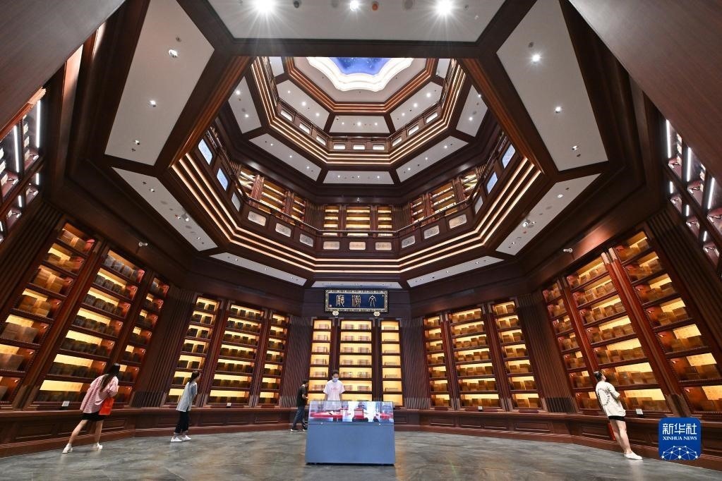 觀眾在位于北京的中國(guó)國(guó)家版本館中央總館文瀚廳內(nèi)參觀(2022年7月30日攝)。新華社記者 李鑫 攝