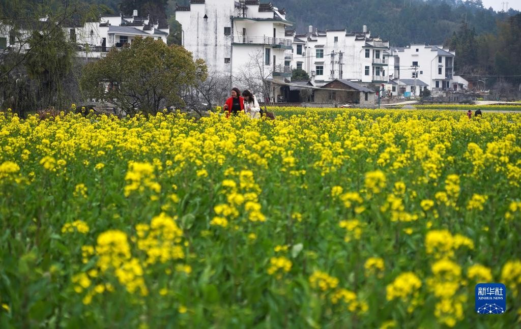 近日,隨著氣溫回暖,江西婺源迎來(lái)賞花季,花海層疊掩映在白墻黛瓦間,吸引游客前來(lái)踏青賞花,享受美好春光。
