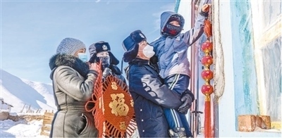 在新疆維吾爾自治區(qū),阿勒泰邊境管理支隊(duì)富蘊(yùn)大隊(duì)吐?tīng)柡檫吘撑沙鏊拿窬妥o(hù)邊員到偏遠(yuǎn)山區(qū)困難群眾家中探訪(fǎng)。李銘驥攝(影像中國(guó))
