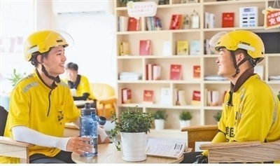 江蘇省淮安市打造集閱讀休息、補(bǔ)給茶水、醫(yī)療等多功能為一體的驛站,為外賣(mài)騎手、網(wǎng)約車(chē)司機(jī)等新就業(yè)群體從業(yè)人員提供暖心服務(wù)。趙啟瑞攝(人民視覺(jué))