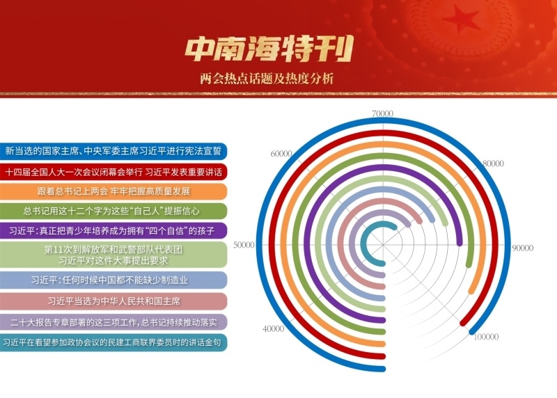 3月,世界目光,聚焦北京。近3000名中外記者采訪報(bào)道全國兩會(huì)。央視網(wǎng)“智聞”系統(tǒng)提取分析兩會(huì)期間全網(wǎng)時(shí)政新聞熱點(diǎn)顯示,習(xí)近平總書記的兩會(huì)關(guān)切吸引全網(wǎng)目光,新征程領(lǐng)路人的人民情懷成為網(wǎng)友“兩會(huì)印象”最深刻的主題之一。