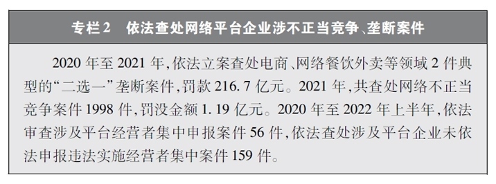 保障公平競(jìng)爭(zhēng)的網(wǎng)絡(luò)市場(chǎng)環(huán)境。隨著網(wǎng)絡(luò)平臺(tái)企業(yè)不斷擴(kuò)展自身的體量和實(shí)力,“掐尖式并購”、無正當(dāng)理由屏蔽鏈接、“二選一”、大數(shù)據(jù)殺熟、流量挾持等妨礙市場(chǎng)公平競(jìng)爭(zhēng)的問題也逐漸凸顯。中國積極回應(yīng)人民群眾訴求,在支持網(wǎng)絡(luò)平臺(tái)企業(yè)創(chuàng)新發(fā)展的同時(shí),依法規(guī)范和引導(dǎo)資本健康發(fā)展,采取多種治理平臺(tái)競(jìng)爭(zhēng)失序的執(zhí)法舉措。聚焦大型網(wǎng)絡(luò)平臺(tái)價(jià)格欺詐、低價(jià)傾銷等重點(diǎn)問題,通過行政約談、行政指導(dǎo)、規(guī)則指引等多種監(jiān)管手段,整治壟斷和不正當(dāng)競(jìng)爭(zhēng)行為。圍繞民生、金融、科技、傳媒等重點(diǎn)行業(yè),依法審查涉及平臺(tái)經(jīng)營者集中案件,防止可能妨礙市場(chǎng)競(jìng)爭(zhēng)和創(chuàng)新發(fā)展的并購行為,引導(dǎo)網(wǎng)絡(luò)平臺(tái)企業(yè)增強(qiáng)合規(guī)意識(shí),規(guī)范自身經(jīng)營行為。通過一系列行動(dòng),平臺(tái)經(jīng)濟(jì)市場(chǎng)環(huán)境不斷優(yōu)化,公平競(jìng)爭(zhēng)的行業(yè)生態(tài)穩(wěn)步向好,中小企業(yè)獲得更廣闊的發(fā)展空間,統(tǒng)一、開放、公平、競(jìng)爭(zhēng)、有序的網(wǎng)絡(luò)競(jìng)爭(zhēng)環(huán)境正在形成。
