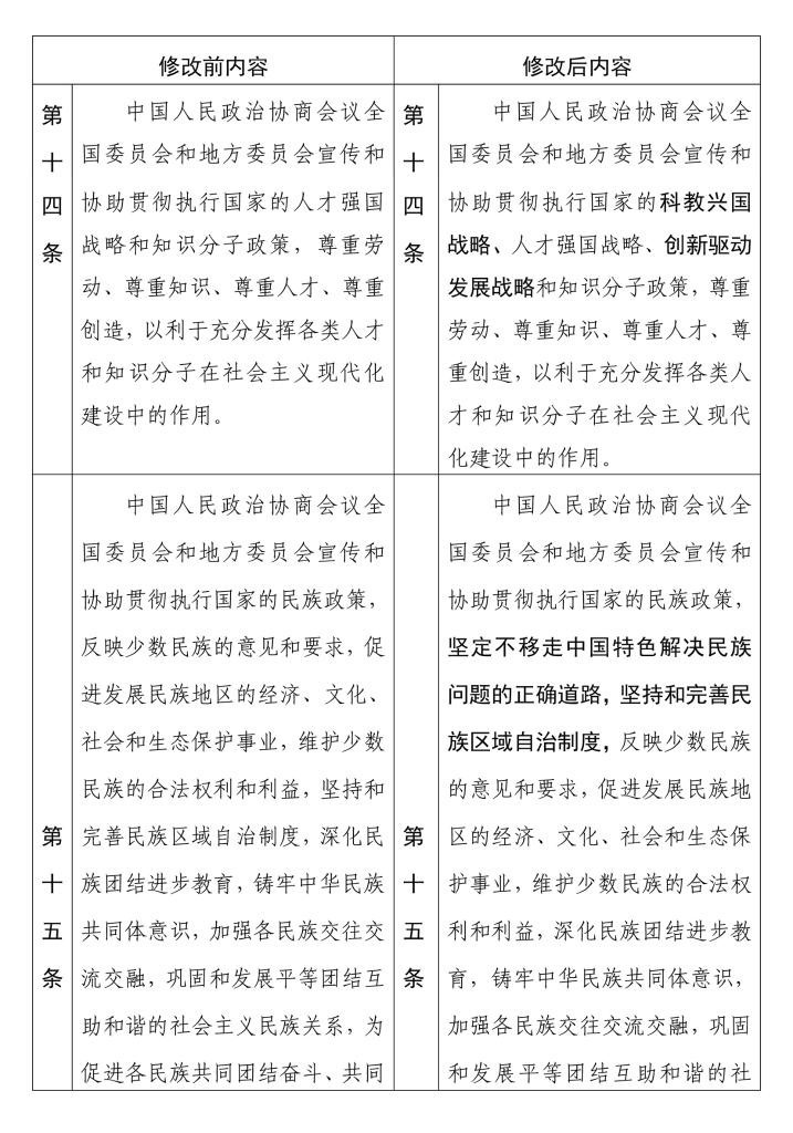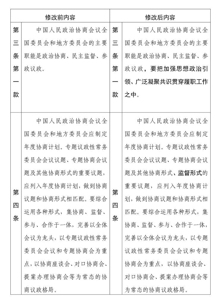 中國(guó)人民政治協(xié)商會(huì)議章程 修改前后內(nèi)容對(duì)照表(5) 新華社發(fā)