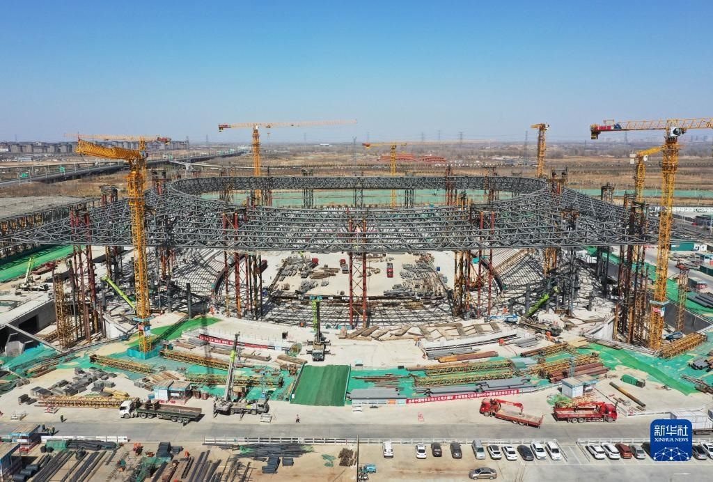 這是位于雄安新區(qū)啟動(dòng)區(qū)的雄安體育中心項(xiàng)目現(xiàn)場(2023年3月15日攝,無人機(jī)照片)。新華社記者 朱旭東 攝