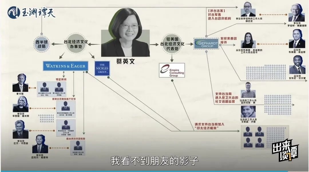 趁熱再打鐵,玉淵譚天繼續(xù)抽絲剝繭,以數(shù)據(jù)視頻《起底!臺(tái)當(dāng)局“朋友圈”大公開》深扒臺(tái)當(dāng)局近兩年在美國登記在冊(cè)的游說方式與對(duì)象,用翔實(shí)的數(shù)據(jù),揭秘了臺(tái)當(dāng)局能接觸到的美國會(huì)人員多為邊緣人的真相,結(jié)合送“保護(hù)費(fèi)”、送“官職”等賣臺(tái)行為實(shí)錘,讓臺(tái)當(dāng)局在所謂“美臺(tái)關(guān)系”中的卑微姿態(tài)展露無遺。