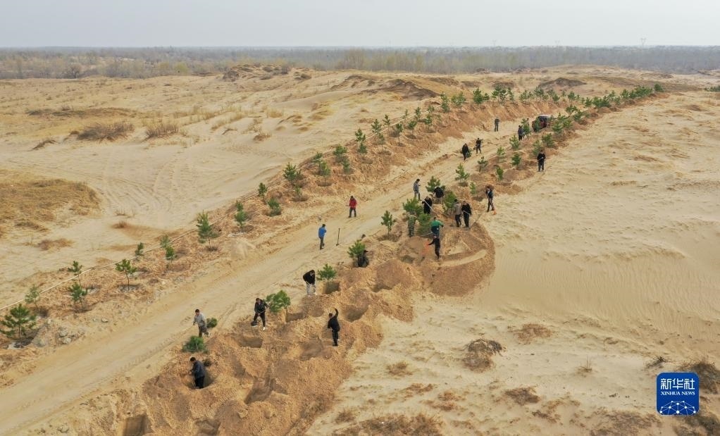 近日,在內(nèi)蒙古通遼市科爾沁左翼后旗,治沙工人忙著植樹造林,給科爾沁沙地披上“綠裝”。科爾沁沙地橫跨內(nèi)蒙古、吉林、遼寧三省區(qū),沙地面積7760萬畝,在內(nèi)蒙古通遼市境內(nèi)占52.7%。近年來,依托“三北”防護(hù)林、退耕還林、公益林保護(hù)等重點(diǎn)生態(tài)工程,內(nèi)蒙古通遼市不斷加大植樹造林、草原修復(fù)和生態(tài)保護(hù)力度,科爾沁沙地生態(tài)環(huán)境得到改善。
