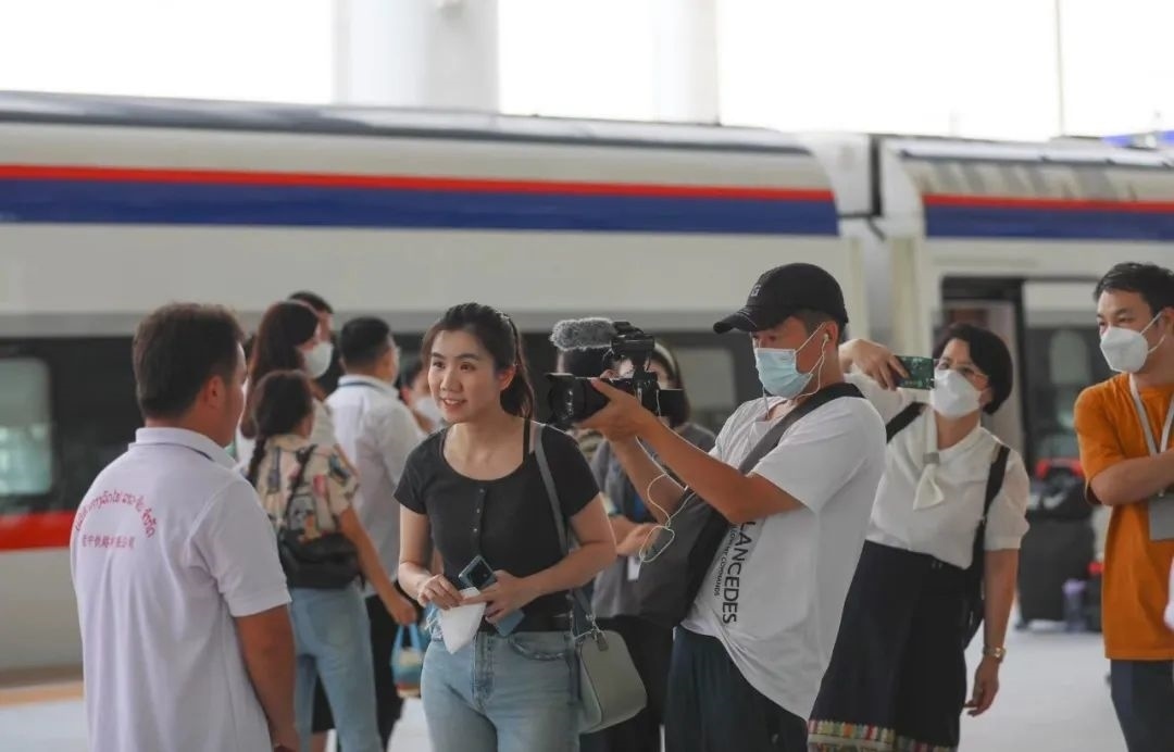 比如,專訪老撾國家主席通倫的節(jié)目中,主持人鄒韻在中老鐵路“瀾滄號”動車上采訪當(dāng)?shù)芈每?,車窗外鐵路沿線風(fēng)光萬千,總臺出品的歌曲《坐著火車去老撾》活潑輕盈,各國乘客用最真實(shí)的出行體驗(yàn),生動展現(xiàn)了跨越山河、聯(lián)結(jié)友誼的中老鐵路,是共建“一帶一路”取得的實(shí)打?qū)嵉某删汀?/p>