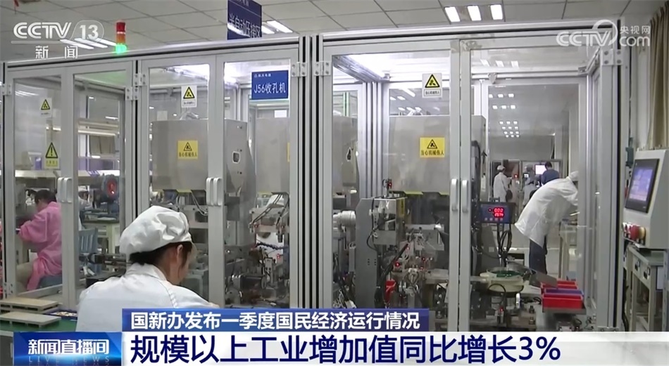 工業(yè)生產(chǎn)穩(wěn)步恢復(fù)。一季度,規(guī)模以上工業(yè)增加值同比增長(zhǎng)3%,比去年四季度加快0.3個(gè)百分點(diǎn)。