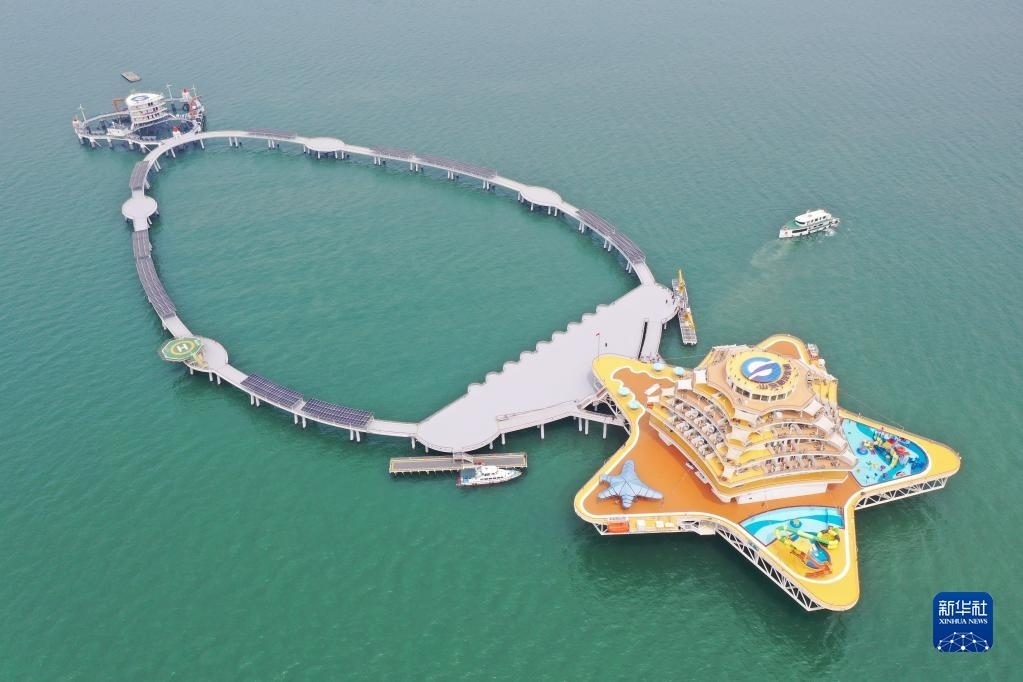 當(dāng)日,位于山東省煙臺市萊山區(qū)的“耕海1號”海洋牧場綜合體二期項目投入運營。“耕海1號”集漁業(yè)養(yǎng)殖、海上觀光、休閑垂釣、餐飲住宿、科研科普等于一體,創(chuàng)新性實現(xiàn)現(xiàn)代海洋漁業(yè)、海洋工程技術(shù)和海洋文化旅游產(chǎn)業(yè)深度有機融合。新華社記者 李紫恒 攝