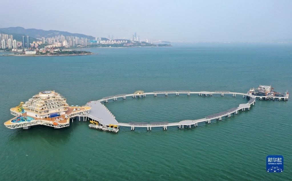 當(dāng)日,位于山東省煙臺市萊山區(qū)的“耕海1號”海洋牧場綜合體二期項目投入運營?!案?號”集漁業(yè)養(yǎng)殖、海上觀光、休閑垂釣、餐飲住宿、科研科普等于一體,創(chuàng)新性實現(xiàn)現(xiàn)代海洋漁業(yè)、海洋工程技術(shù)和海洋文化旅游產(chǎn)業(yè)深度有機融合。新華社發(fā)(唐克攝)