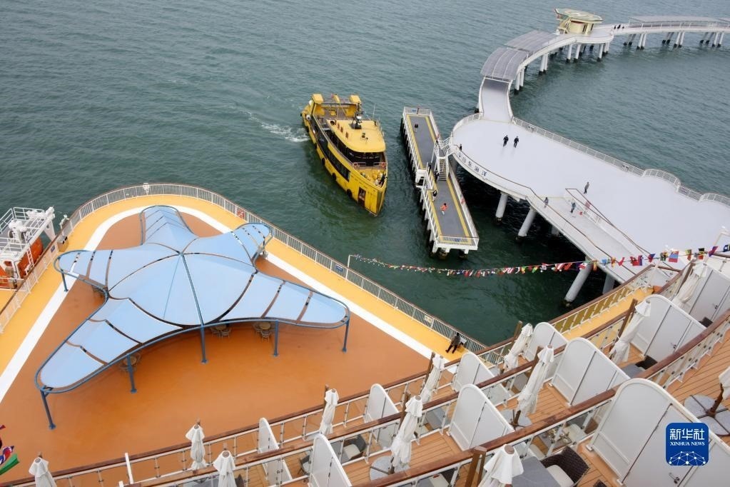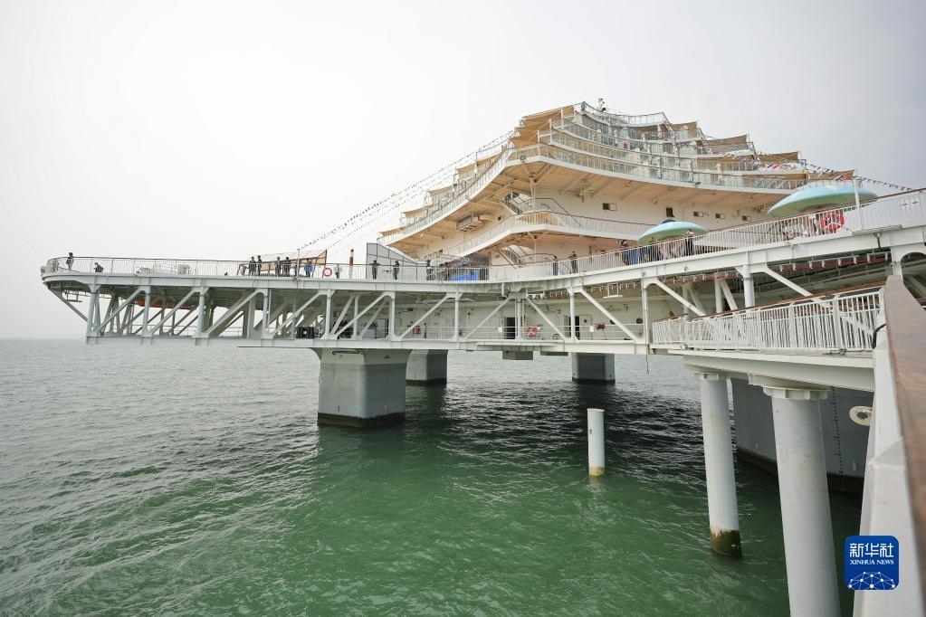 當(dāng)日,位于山東省煙臺市萊山區(qū)的“耕海1號”海洋牧場綜合體二期項目投入運營?!案?號”集漁業(yè)養(yǎng)殖、海上觀光、休閑垂釣、餐飲住宿、科研科普等于一體,創(chuàng)新性實現(xiàn)現(xiàn)代海洋漁業(yè)、海洋工程技術(shù)和海洋文化旅游產(chǎn)業(yè)深度有機融合。新華社記者 李紫恒 攝