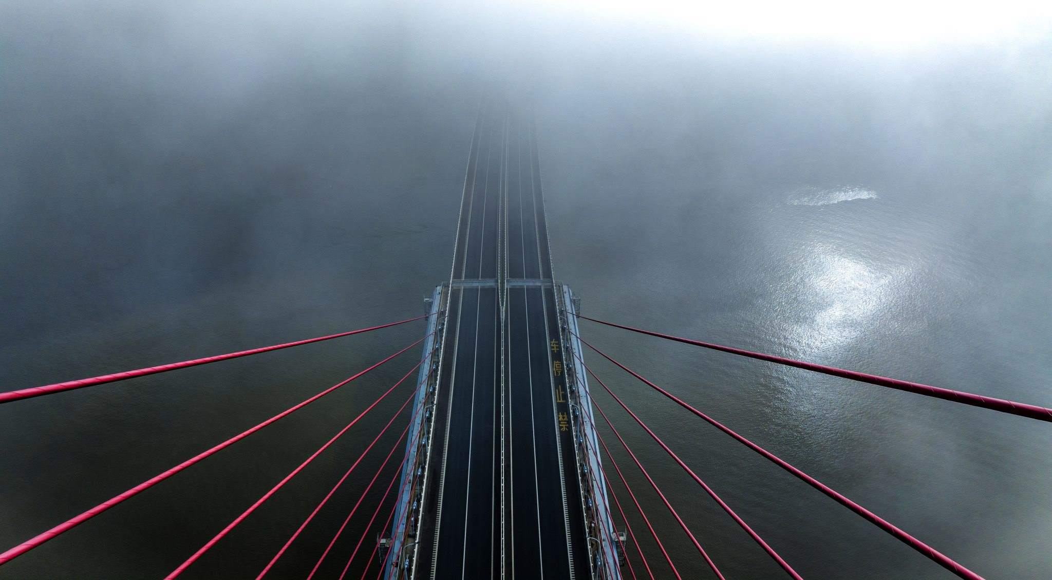 2023年4月26日,江西九江,都昌縣出現(xiàn)平流霧景觀,鄱陽(yáng)湖二橋在霧中若隱若現(xiàn)。視覺中國(guó)