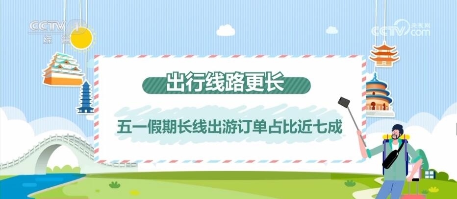 出行的人不僅多,出行的線路也更長了。今年,“五一”長線出游訂單占比近七成,比2019年高出6個(gè)百分點(diǎn)。