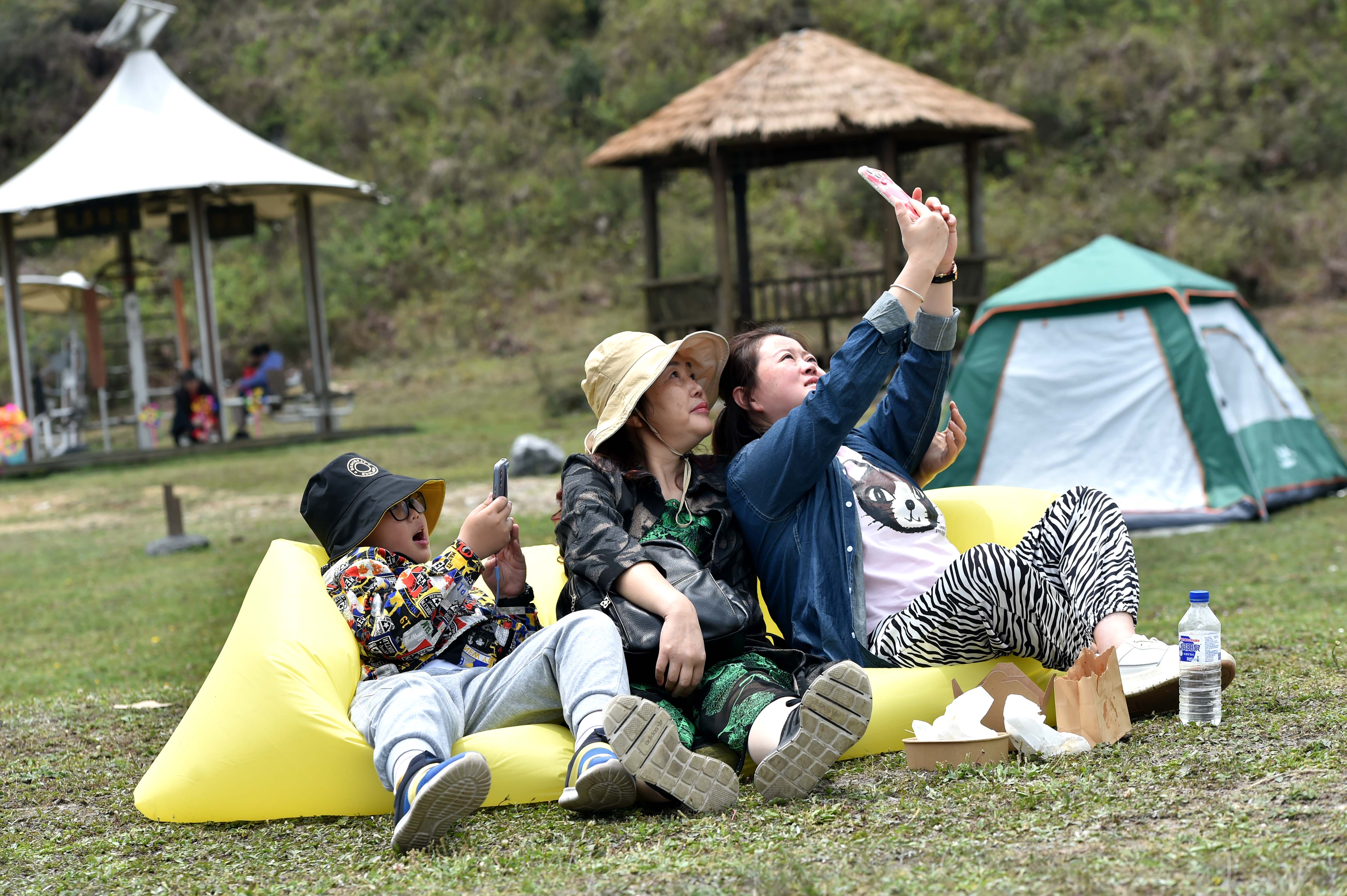 2023年4月30日,游客在貴州省畢節(jié)百里杜鵑方家坪景區(qū)自拍留影。 (寧堅 柏祥意)