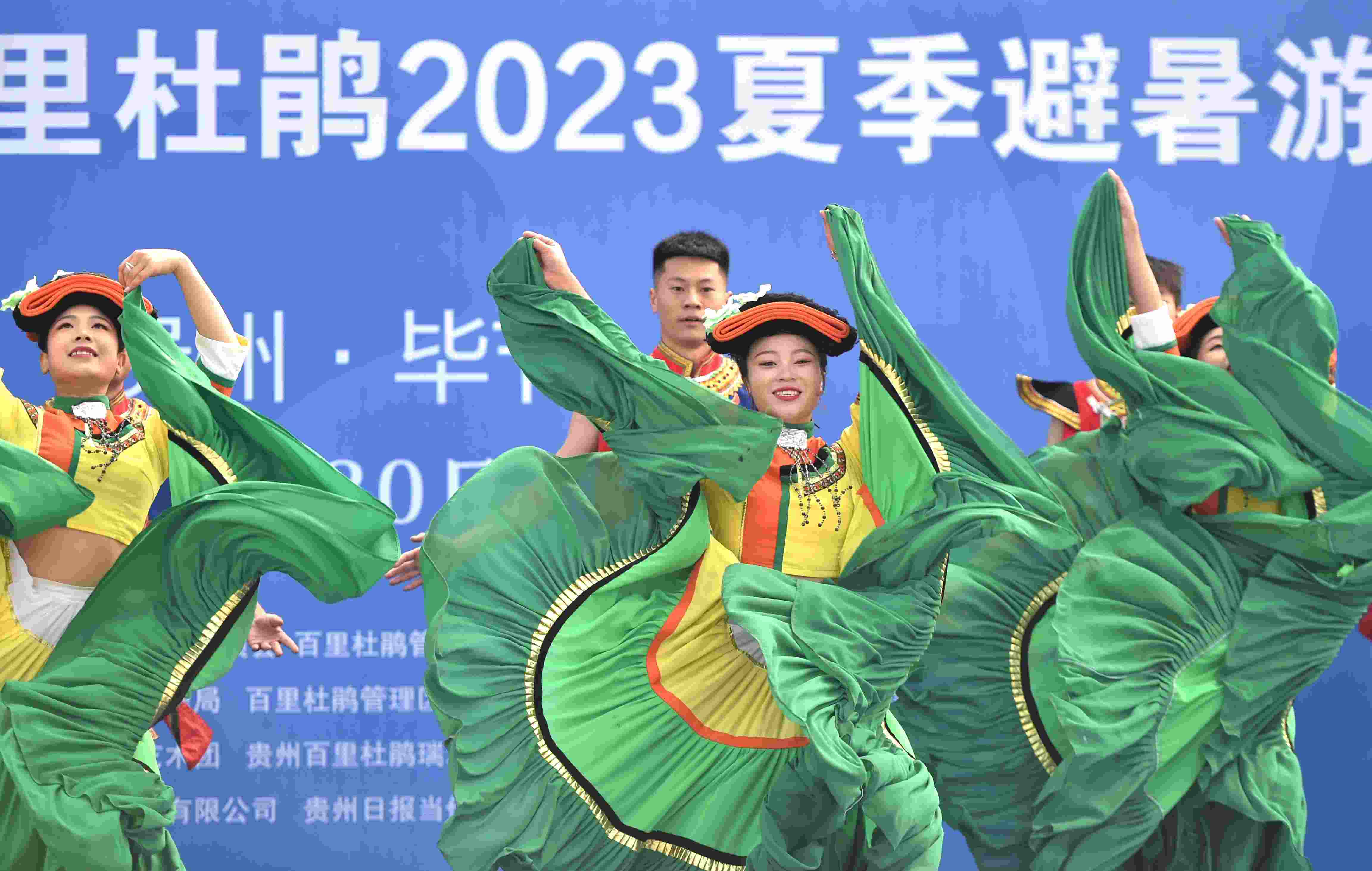 2023年4月30日,演員在貴州省畢節(jié)百里杜鵑方家坪景區(qū)表演彝族舞蹈。 (寧堅 柏祥意)