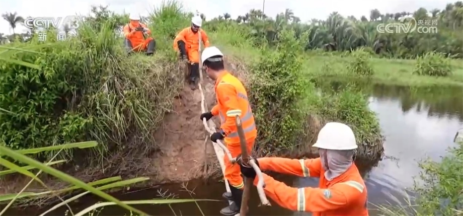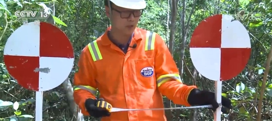 在勘探過程中,工作人員會用不同顏色的飄帶進行標記,這種紅色的飄帶是代表保護樹種,禁止砍伐,藍色飄帶則指示著項目的路線。這些飄帶全都是用可降解材料制成的,在勘探任務結束后,還會有專門的小組對工區(qū)進行垃圾回收和雨林恢復工作。目前,項目已經完成了70%的工作量,預計7月中旬可以順利竣工。一年多來,項目多次接受當?shù)丨h(huán)保等部門的各項檢查,每一次審計和檢測都收到了相關方非常高的評價。