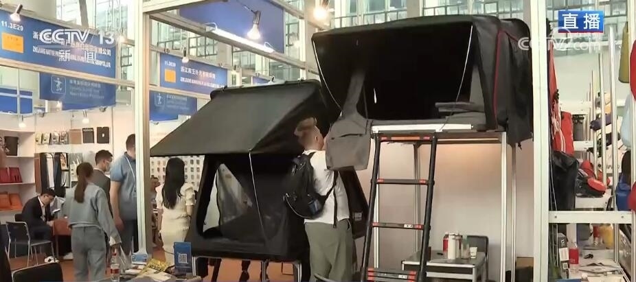 在體育旅游休閑用品中,各種露營類產(chǎn)品目前也是非常受歡迎。其中具有新功能、更便捷的產(chǎn)品獲得了采購商的注意,不少展位都有客商前來洽談。