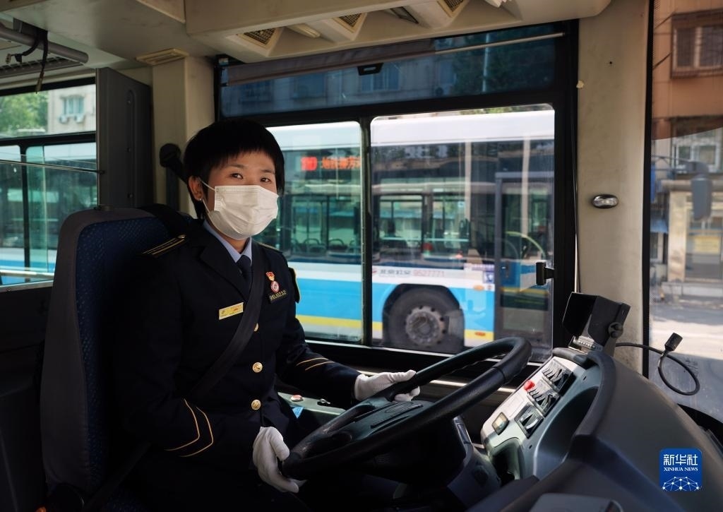 5月1日,在位于北京市朝陽(yáng)區(qū)的柳芳公交場(chǎng)站,104路公交車駕駛員高國(guó)然駕駛車輛準(zhǔn)備駛出。