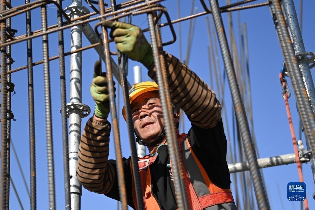 5月1日,工人在中建二局陜西分公司高鐵新城項(xiàng)目工地施工。