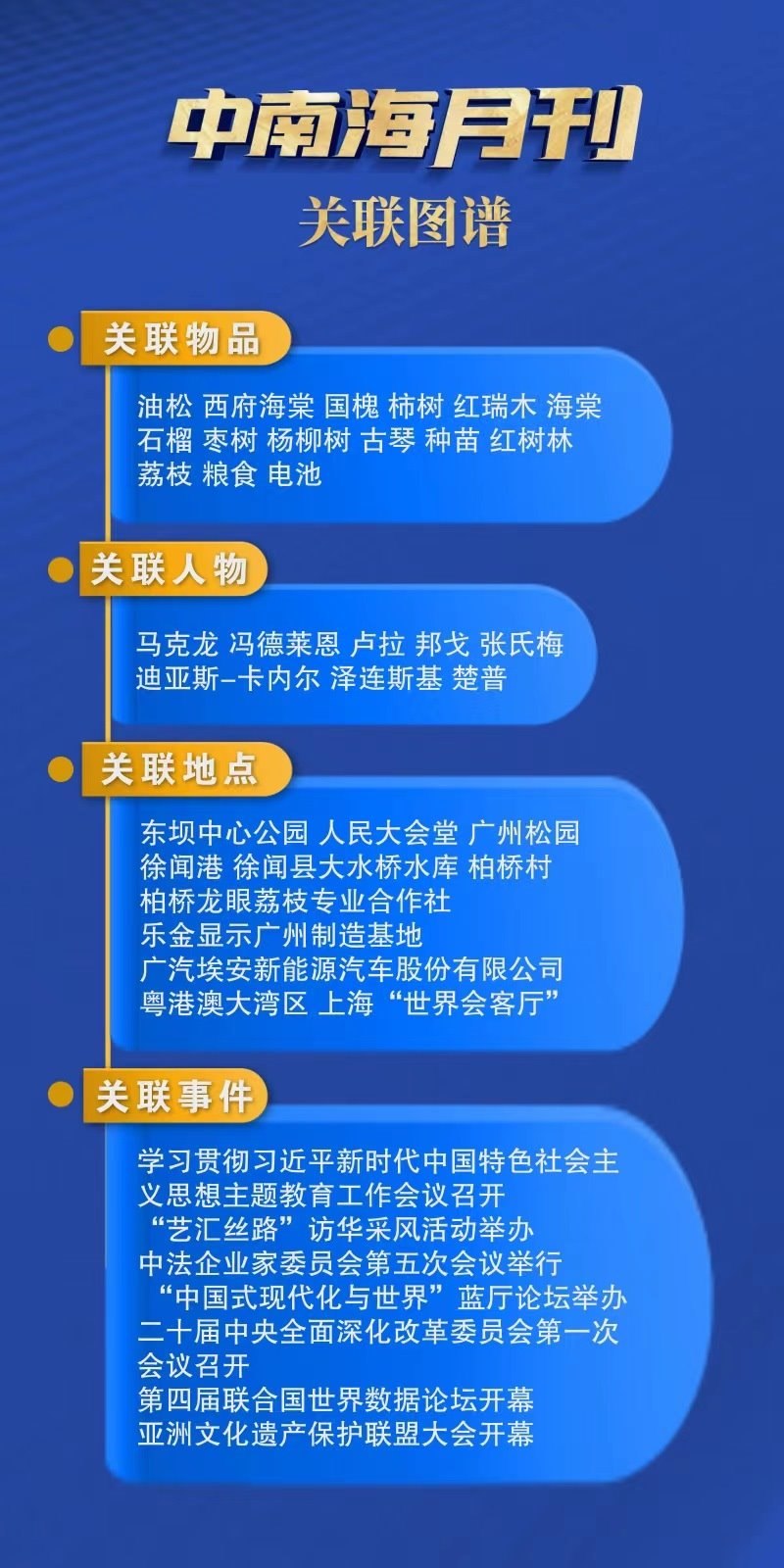 關(guān)聯(lián)地點中的徐聞港、柏橋村等指向總書記的考察地。今年是全面貫徹黨的二十大精神開局之年,習近平總書記兩會后首次地方考察選擇了廣東。他對廣東的干部群眾說:“廣東是一個窗口。到廣東來看一看,了解一下黨的二十大以來都有哪些新進展新氣象?!?/p>