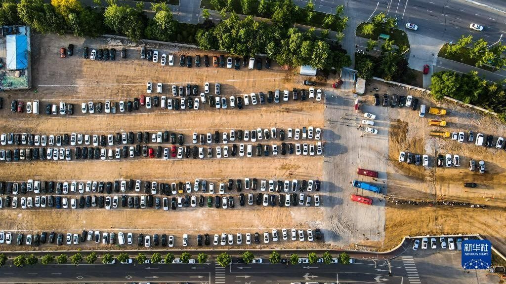 這是4月29日拍攝的淄博市臨淄區(qū)新建可容納1200輛車的臨時停車場,該停車場供游客免費停車(無人機照片)。