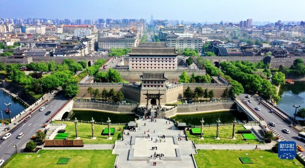 西安城墻永寧門(4月25日攝,無(wú)人機(jī)照片)。