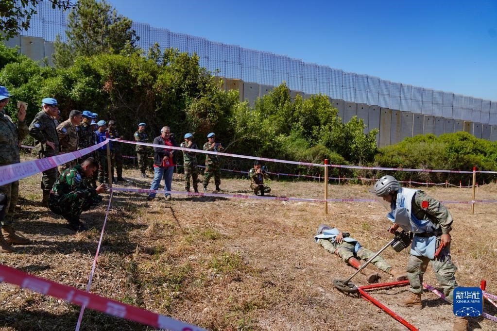 5月3日,在黎巴嫩南部邊境“藍線”附近雷場,參與演習(xí)的中國第21批赴黎巴嫩維和多功能工兵分隊掃雷作業(yè)手開辟救援通道。