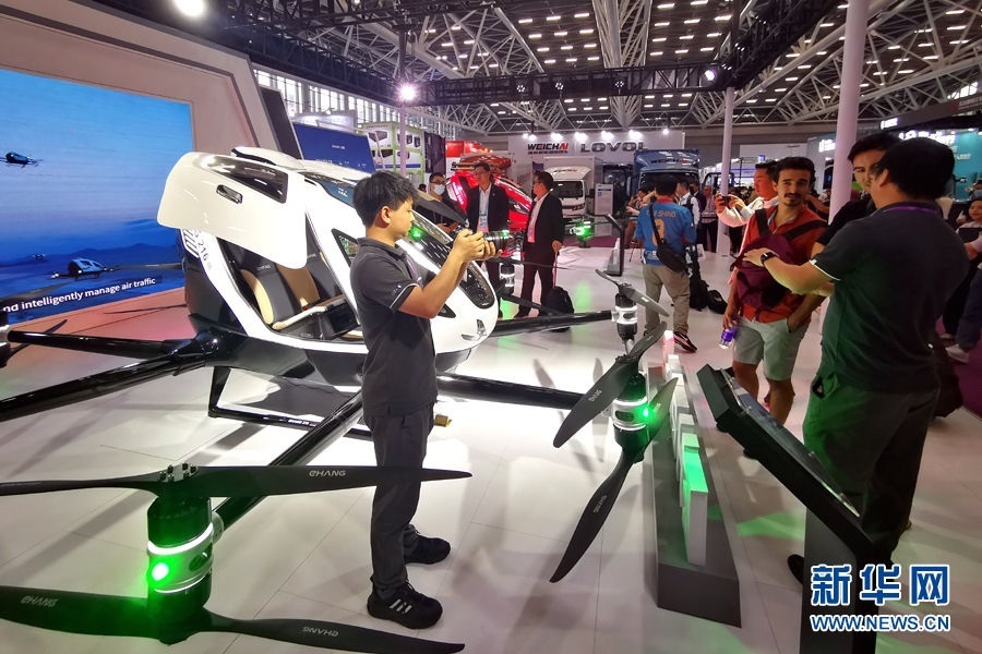 這是廣交會(huì)上展示的億航載人和運(yùn)輸無人機(jī)(4月15日攝)。新華網(wǎng) 盧鑒 攝