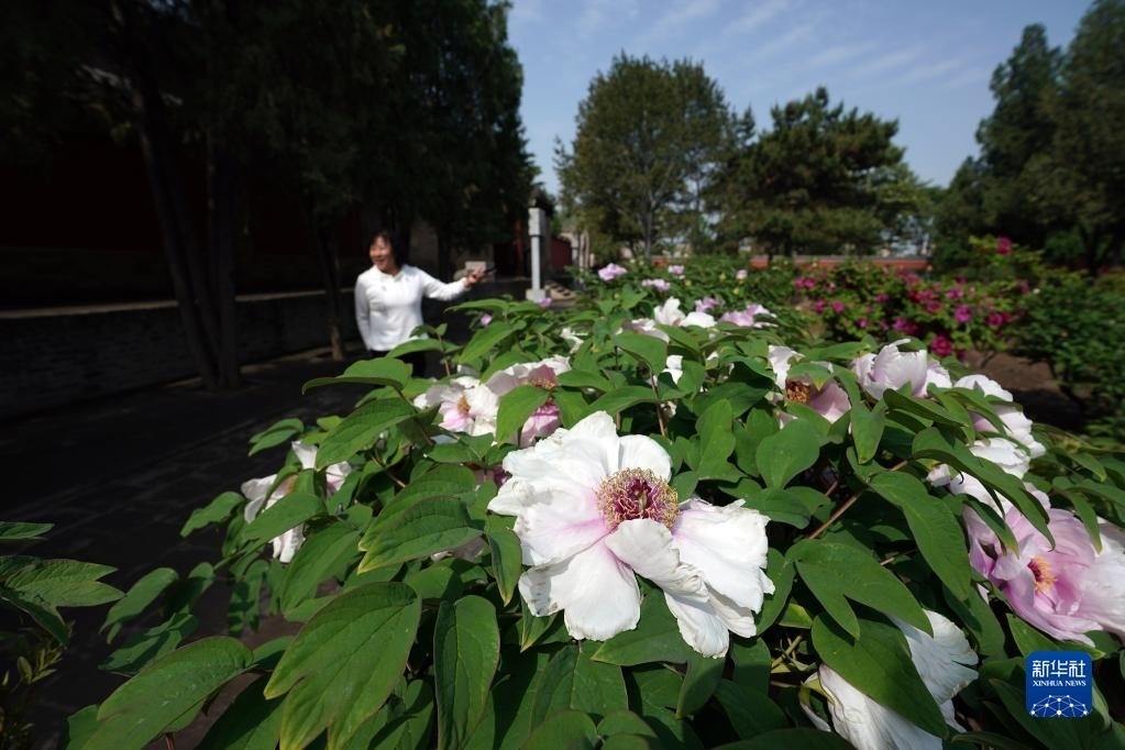 近日,山西太原雙塔寺景區(qū)的數(shù)千株牡丹花競相綻放,吸引游人前來觀花賞景。