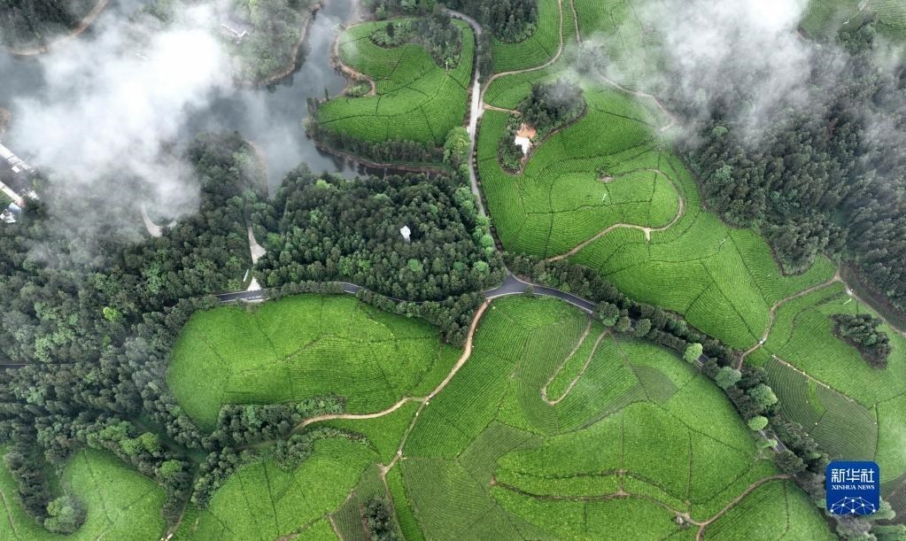 這是5月8日拍攝的鶴峰縣走馬鎮(zhèn)的茶園(無(wú)人機(jī)照片)。