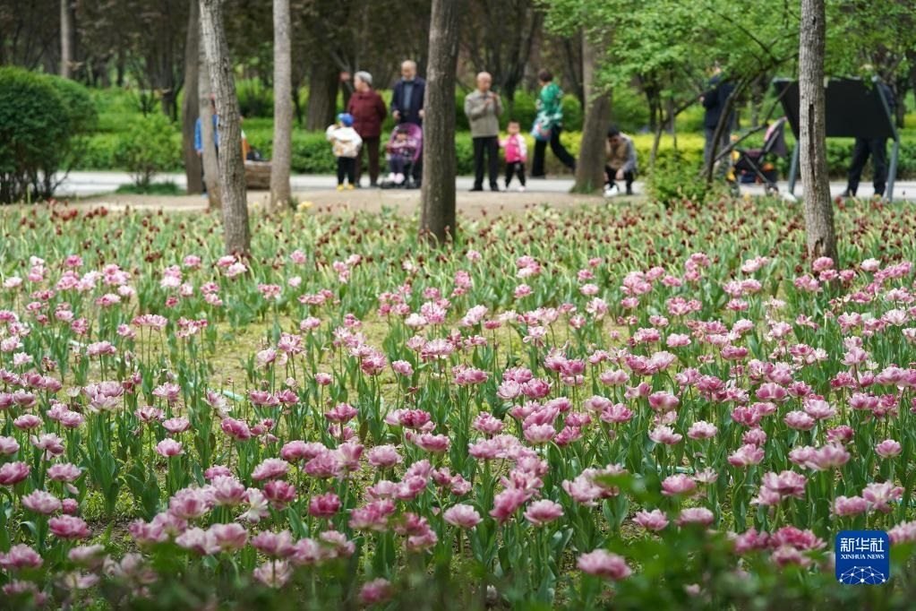 近日,山西省太原市迎澤公園內各色郁金香競相綻放,吸引游人前來觀花賞景。新華社記者 詹彥 攝