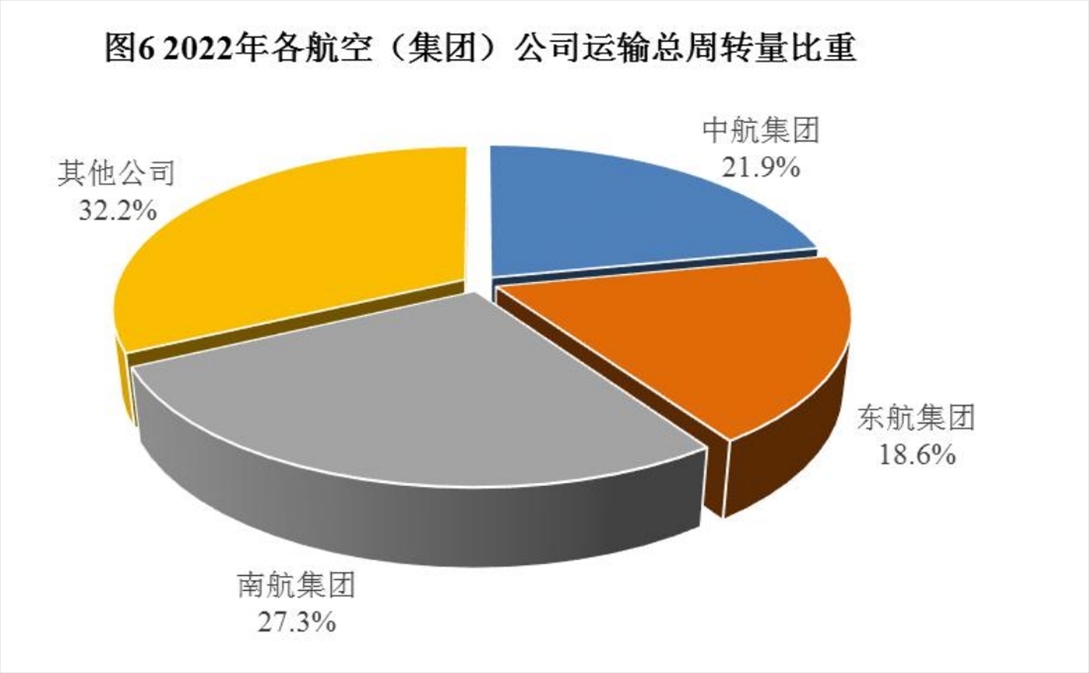 2022年各航空(集團(tuán))公司運(yùn)輸總周轉(zhuǎn)量比重。來源于2022年民航行業(yè)發(fā)展統(tǒng)計公報