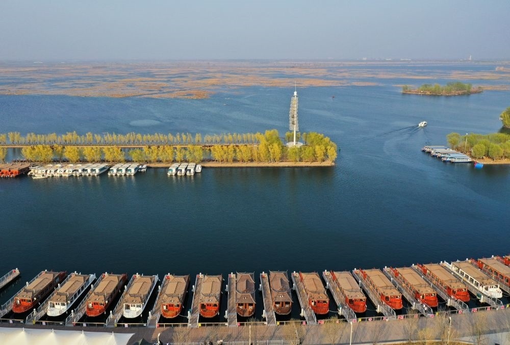 雄安新區(qū)白洋淀景區(qū)(2023年3月30日攝,無(wú)人機(jī)照片)。新華社記者 牟宇 攝