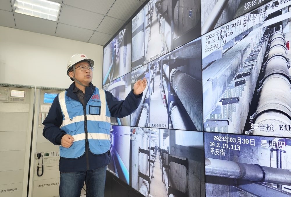 工作人員在雄安新區(qū)容東片區(qū)地下綜合管廊監(jiān)控室工作(2023年3月30日攝)。新華社記者 朱旭東 攝