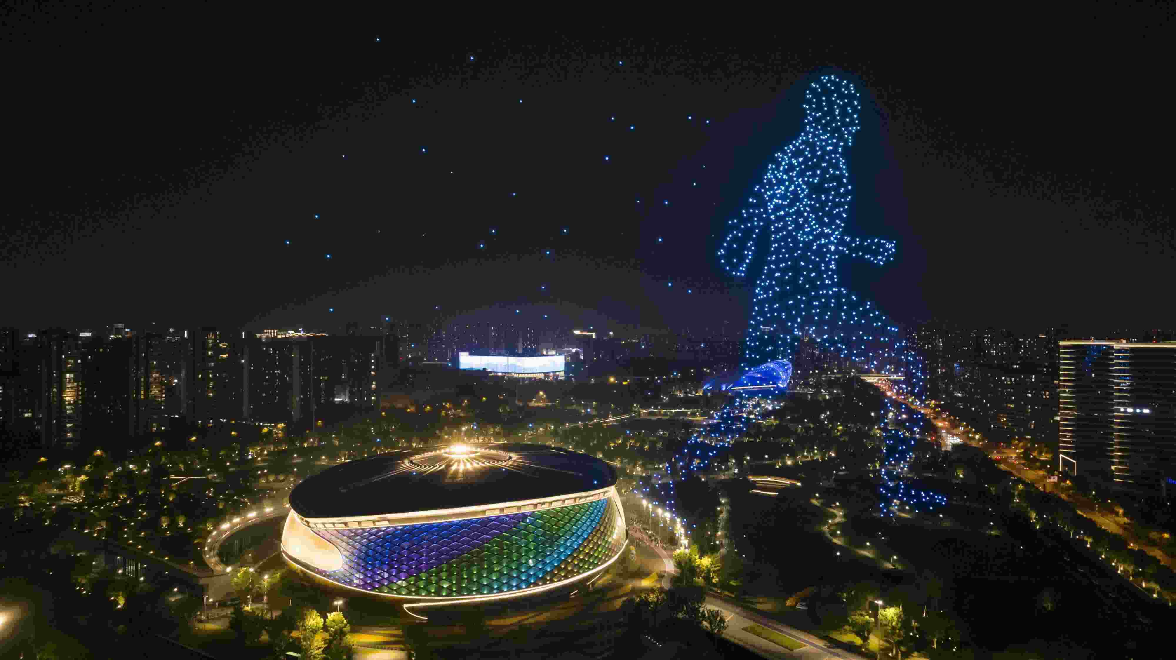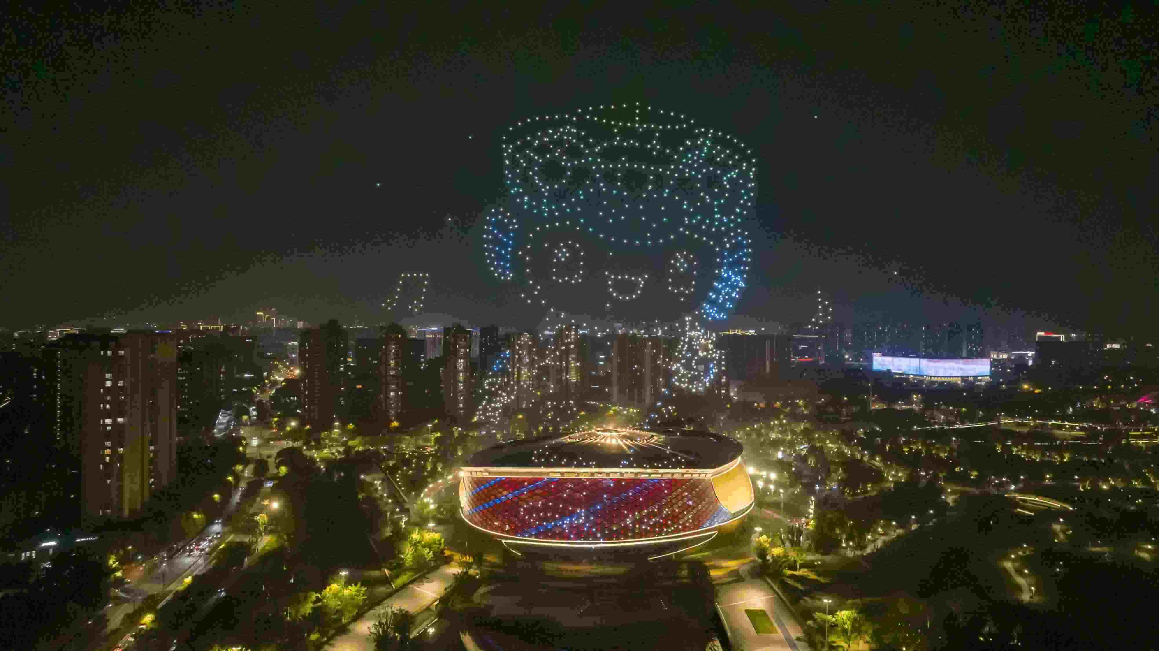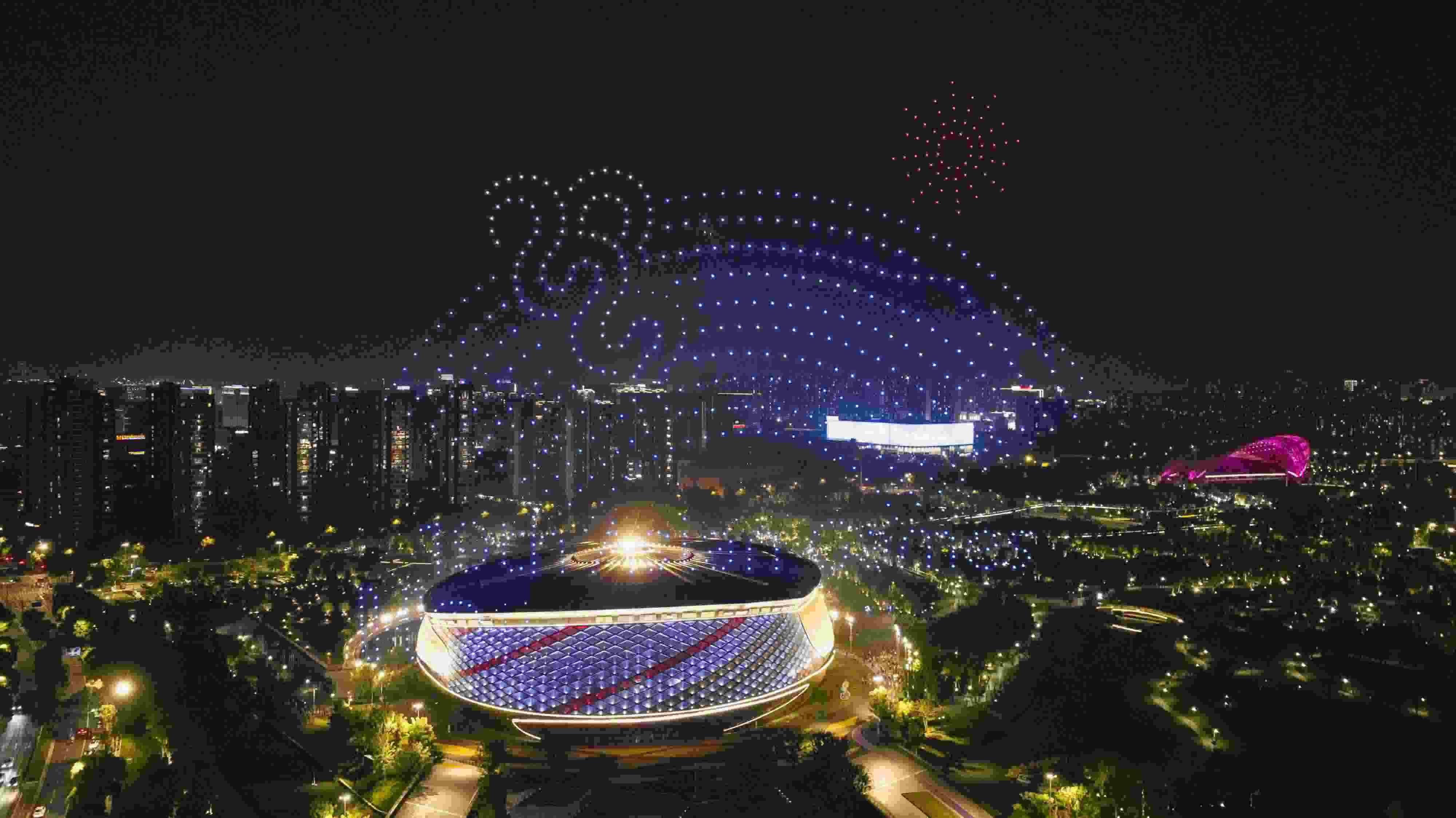 杭州亞運(yùn)公園上演無(wú)人機(jī)燈光秀
