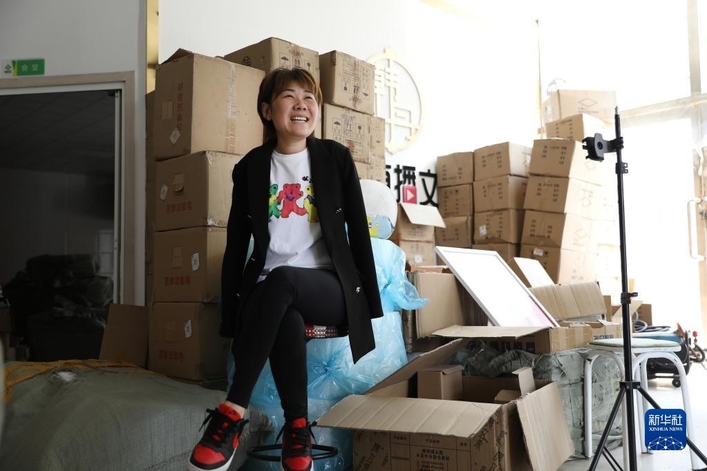 5月11日,韓丹在自己開的網(wǎng)絡傳媒公司內(nèi),詢問當天直播售貨情況。