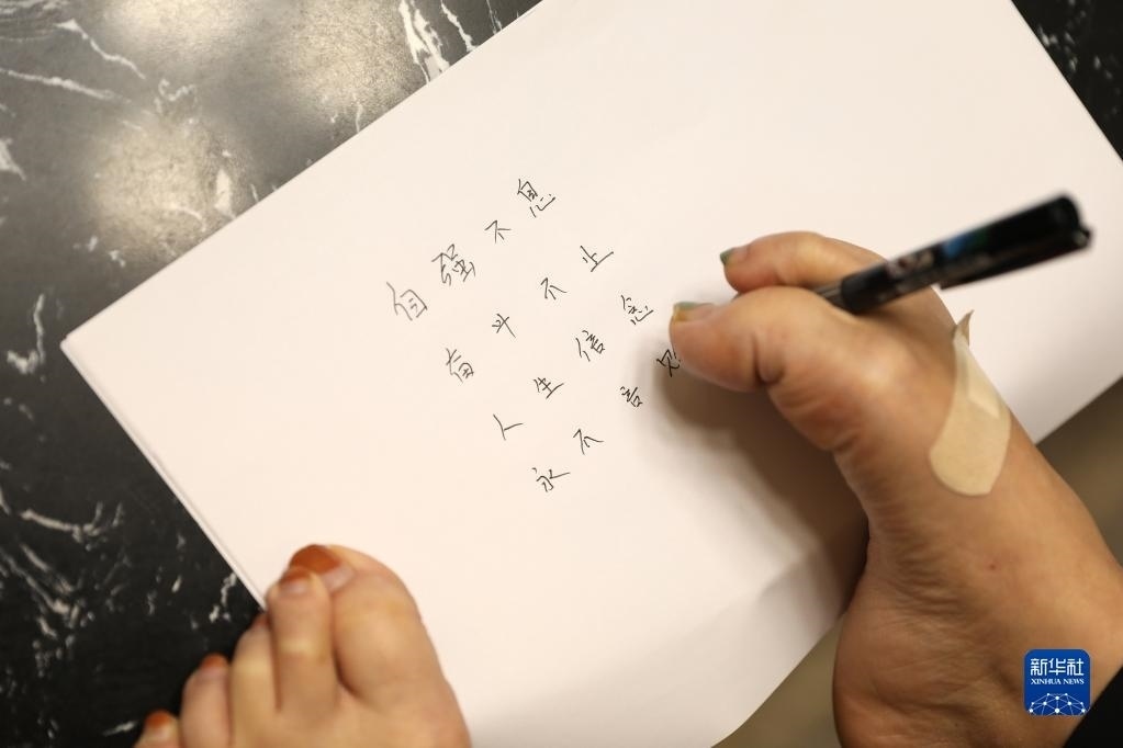 成為一名母親,對于韓丹來說,是一個異常艱難的過程。沒辦法用手抱住喂奶,韓丹就坐在床上,用腳把孩子擁在懷里。女兒的頭發(fā)漸漸長長,韓丹就學著用腳幫她扎馬尾辮,盡自己最大的努力照顧孩子。但在韓丹心里,依然有一個遺憾:不能擁抱自己的孩子。還好兩個孩子很懂事。遇見同學的疑問,他們總會自信地說:“我的媽媽很厲害,她的腳什么都能干!”