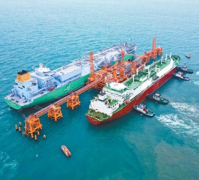 圖為液化天然氣運輸船靠泊接收站碼頭。周立健攝(人民視覺)
