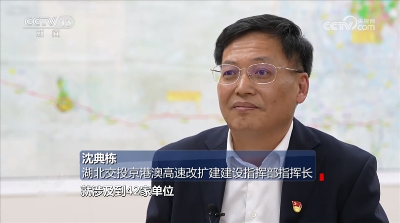 湖北交投京港澳高速改擴建建設指揮部指揮長 沈典棟:我們第一次一路多方的會議,涉及到42家單位,協(xié)調(diào)難度大,42家單位協(xié)調(diào)一致,行動一致,這個難度可想而知。