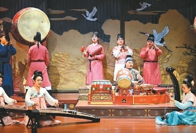 陜西省西安市大唐芙蓉園內(nèi)上演的舞臺劇《鼓》。