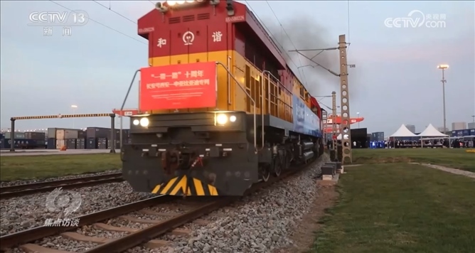就在上個月,為紀念“一帶一路”十周年特別開行的中歐班列——“一帶一路”十周年長安號西安—中亞專列從西安國際港務(wù)區(qū)發(fā)車。2013年11月,首列中歐班列長安號正是由這里出發(fā),開往哈薩克斯坦。從這里啟程的長安號,從最初的年開行46列發(fā)展到去年的4600多列,十年增長了100倍。十年來,長安號累計開行超過1.6萬列。其中,中亞五國開行量達到4250列,為促進中國同中亞互聯(lián)互通與經(jīng)貿(mào)合作發(fā)揮了重要作用。